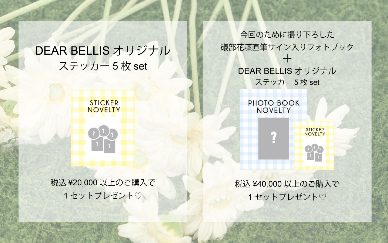 上記の受注期間内にDEAR BELLISの商品を税込¥20,000以上ご購入のお客さまに、DEAR BELLISステッカー5枚setをプレゼント♡!