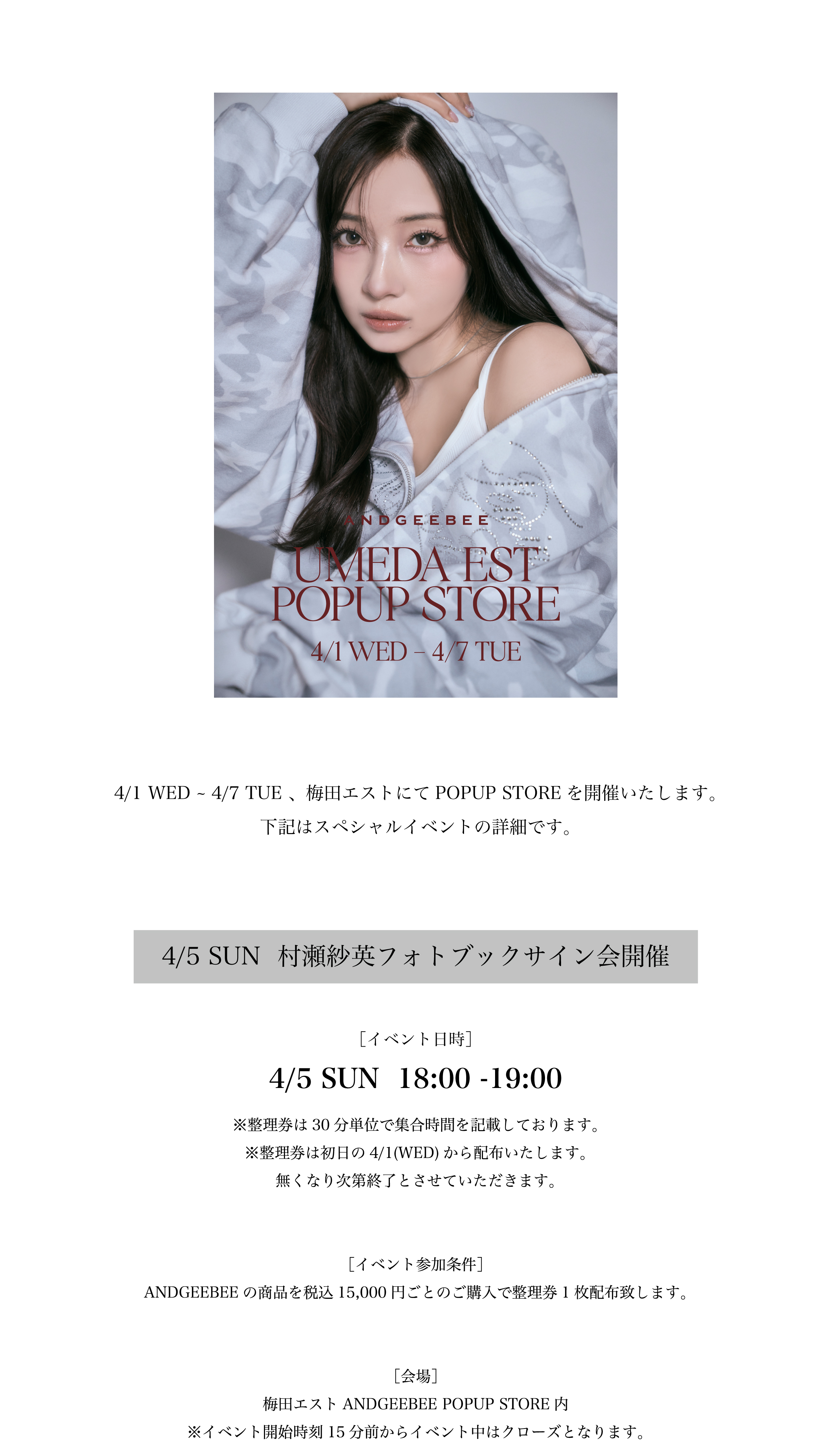 ANDGEEBEE 2026SS UMEDA EST POPUP STORE