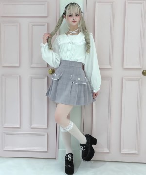 パーツボタンやホワイトのレースがガーリーなアクセントを加えてくれます♡