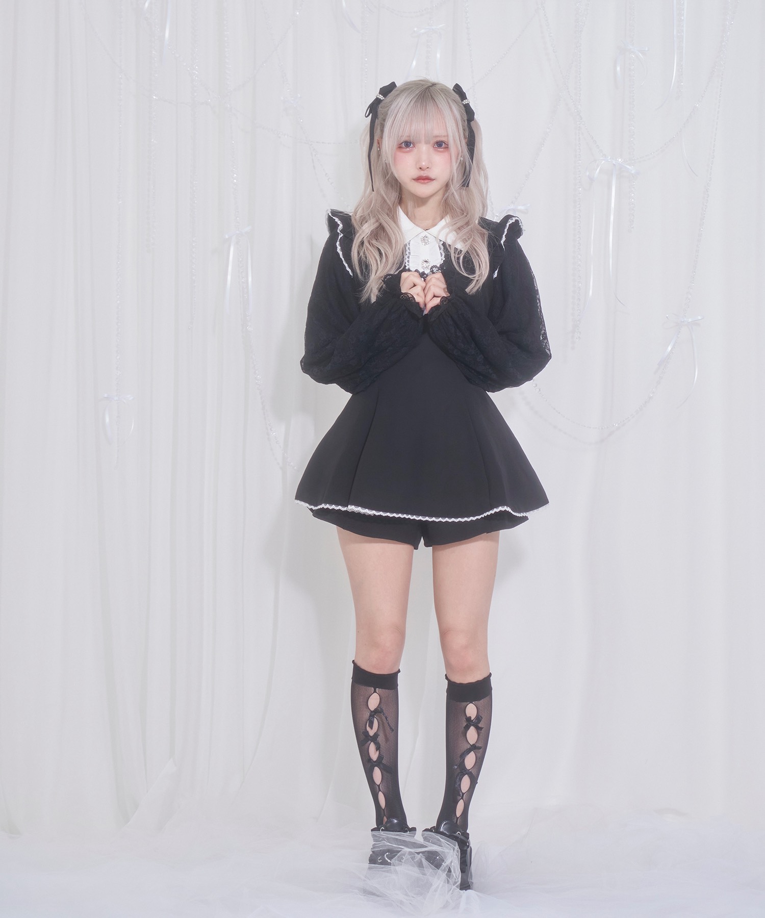 袖にレースを使用して大人ガーリーに仕上げたセットアップ。