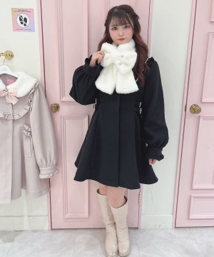 ガーリーコーデにぴったりな大きめのリボンが可愛いマフラー♡ 毎年人気のアイテムが、今季はパールとビジュー追加でバージョンアップ♡ 肌触りの良いふわふわのフェイクファー素材がしっかり暖かく防寒力も抜群です♪