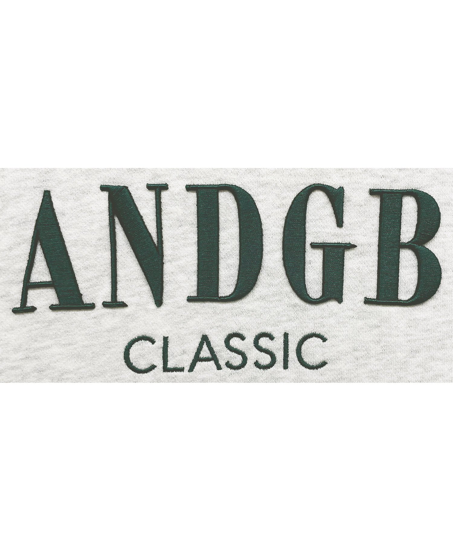 フロントにANDGBロゴの立体的刺繍を施しました。