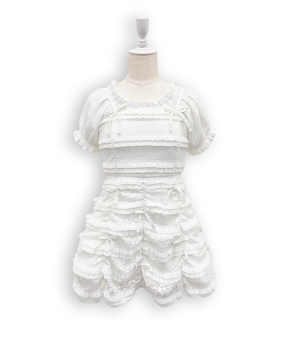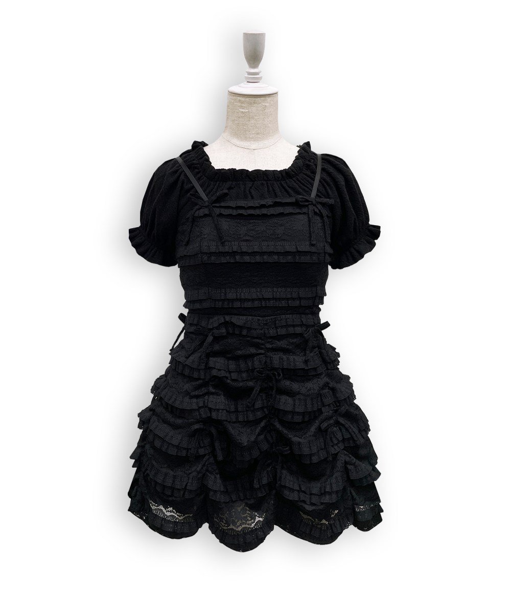 総レースのキャミワンピースとコンパクトトップスのセットアップ♫