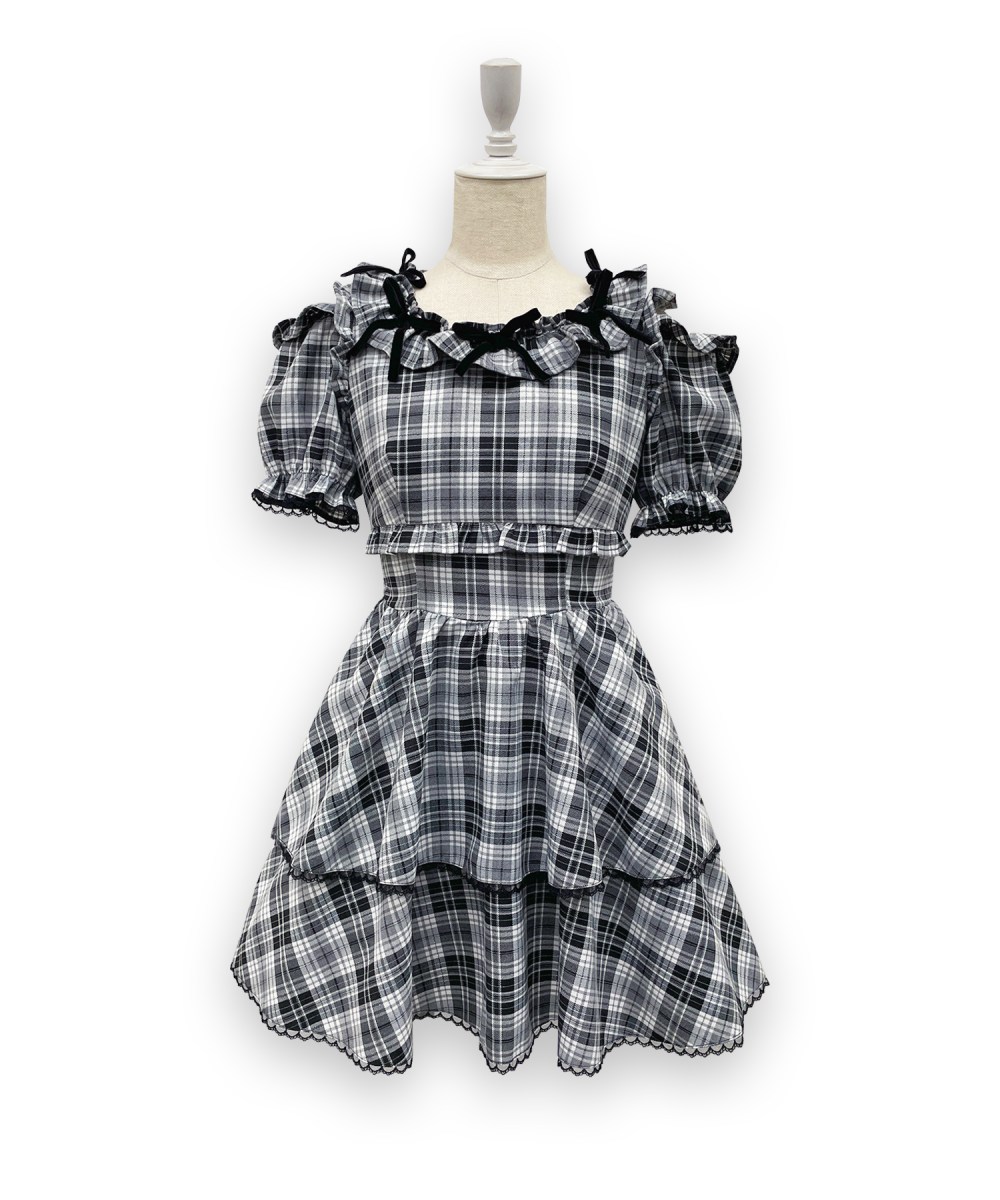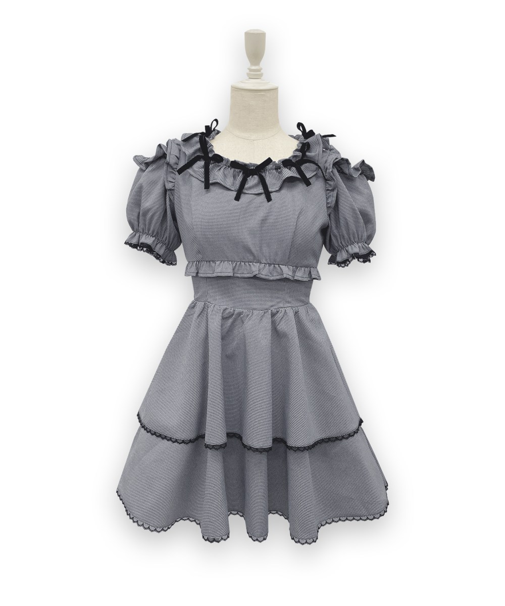 デコルテ周りをフリルとベロアリボンで飾ってくれるワンピース♡