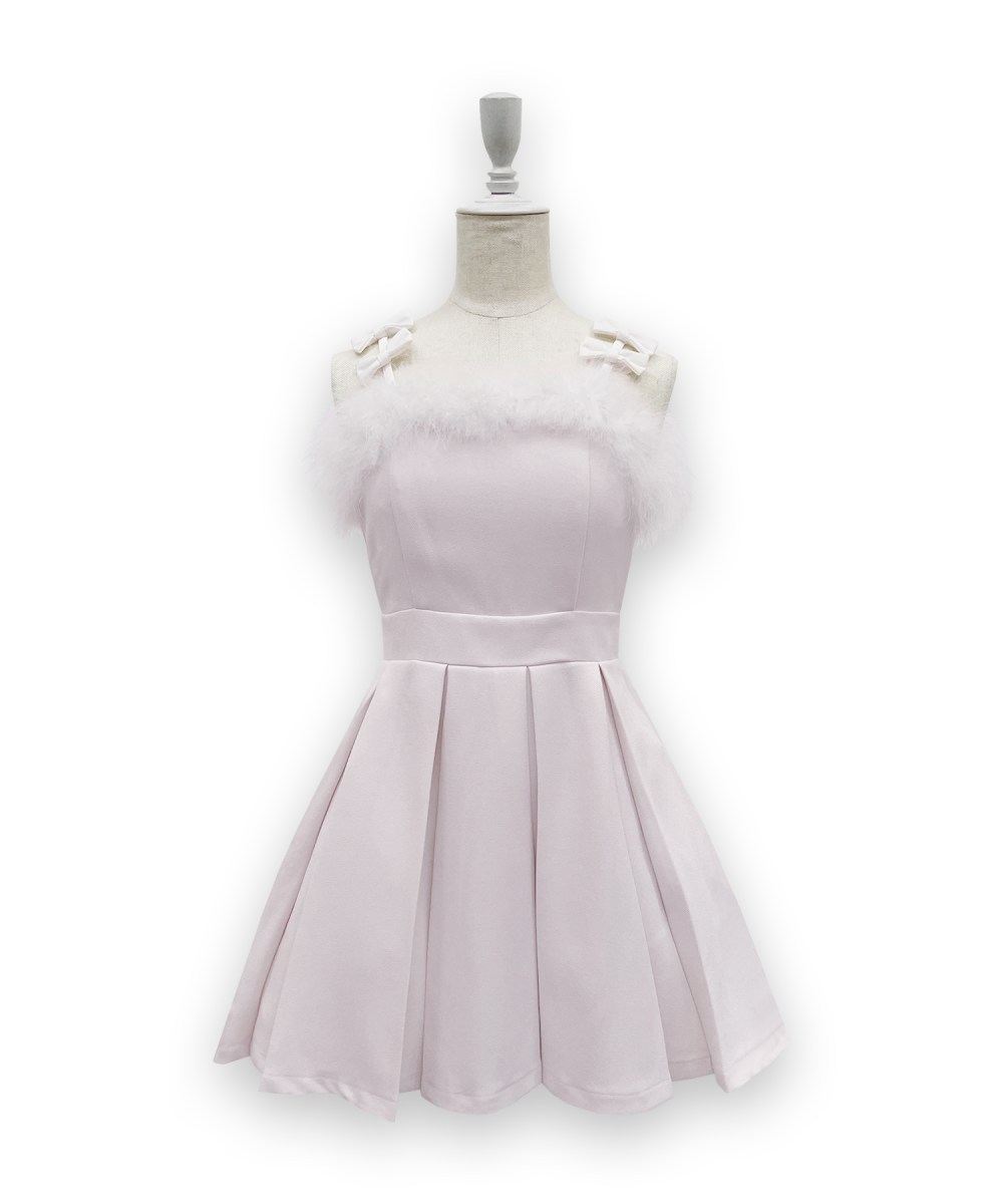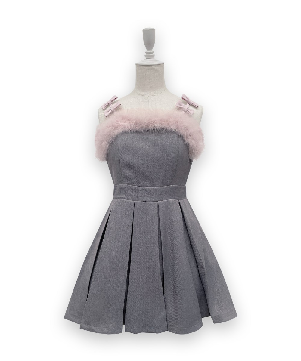肩紐のプチリボンと胸元のフェザーがポイントのジャンパースカート❤︎