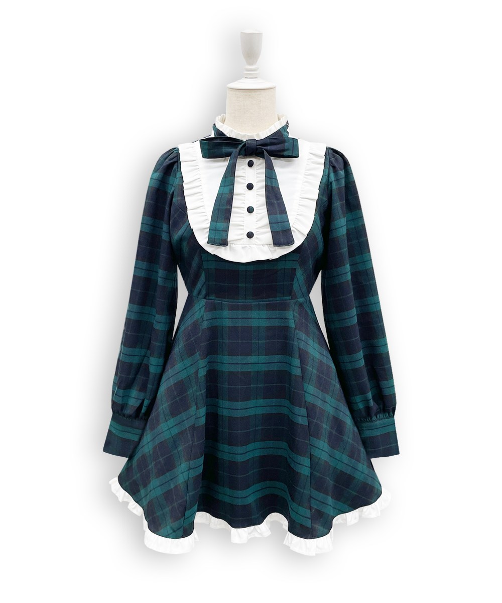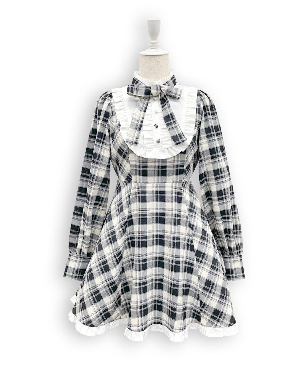 大きめヨークとチェック柄でドーリーなワンピース♪ ワンピースと同じチェック柄のリボンでまとまりのある1枚❤︎