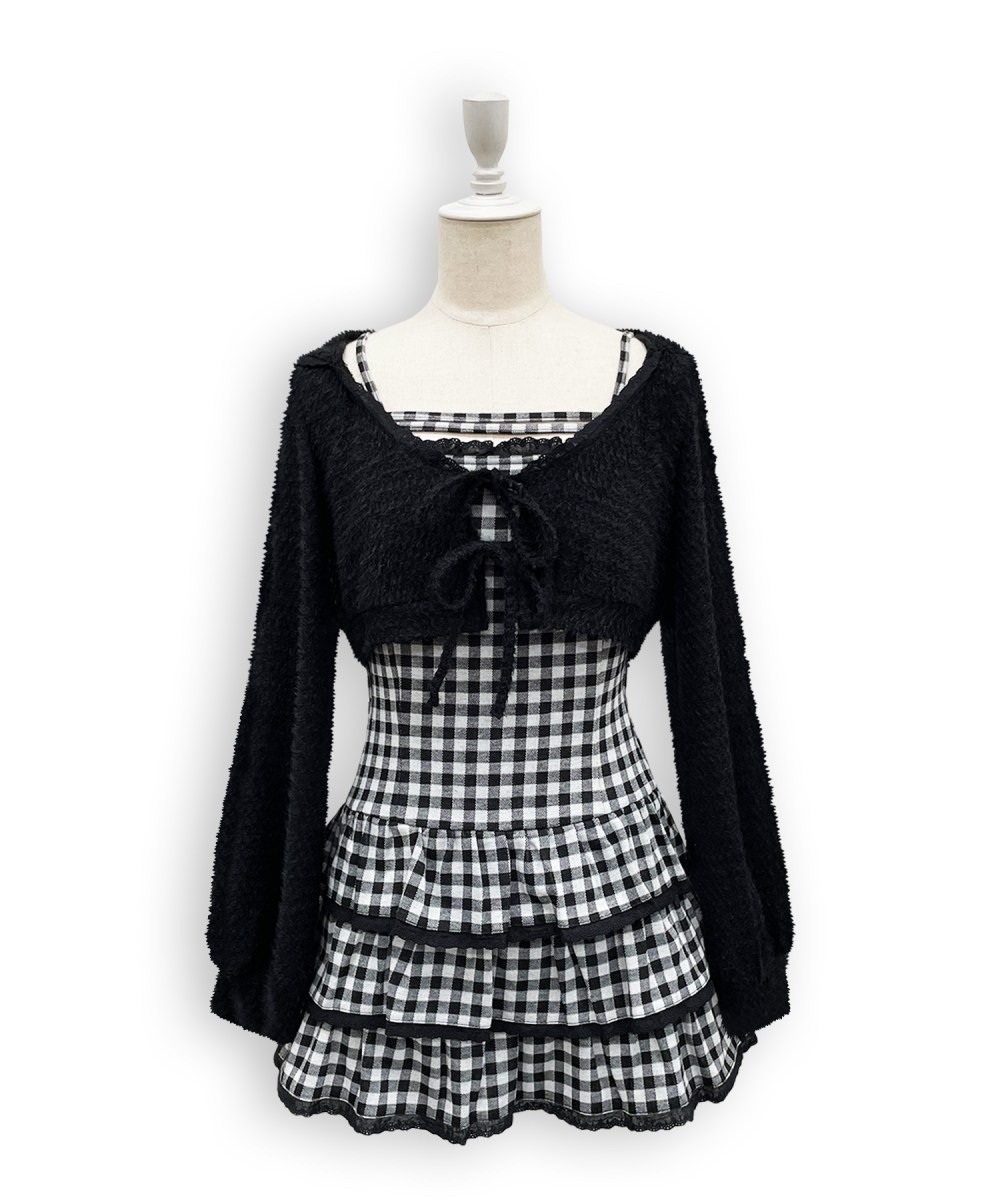 ボディに沿ったワンピースにコンパクトな羽織りでスタイルアップが叶うアイテムです◎