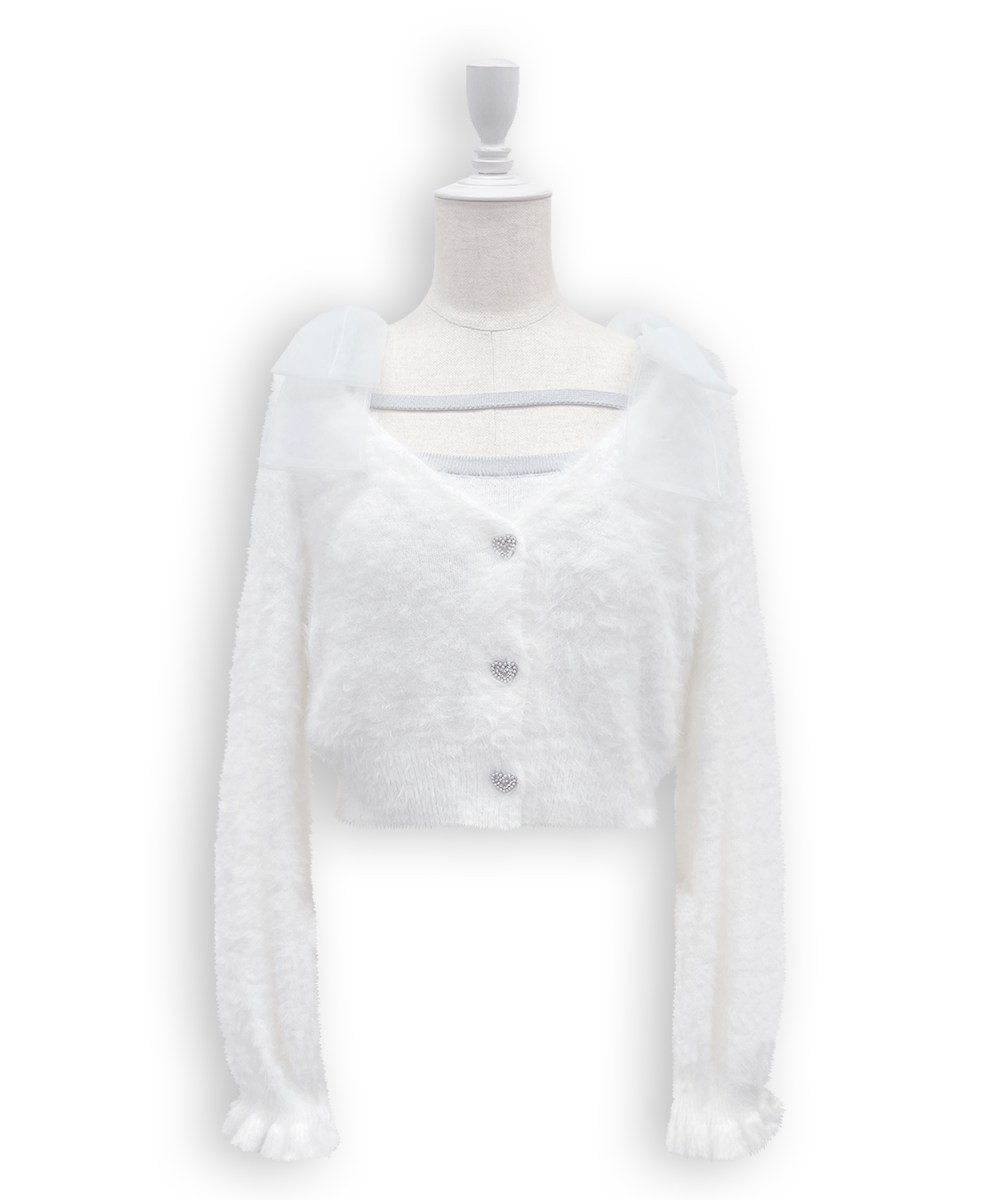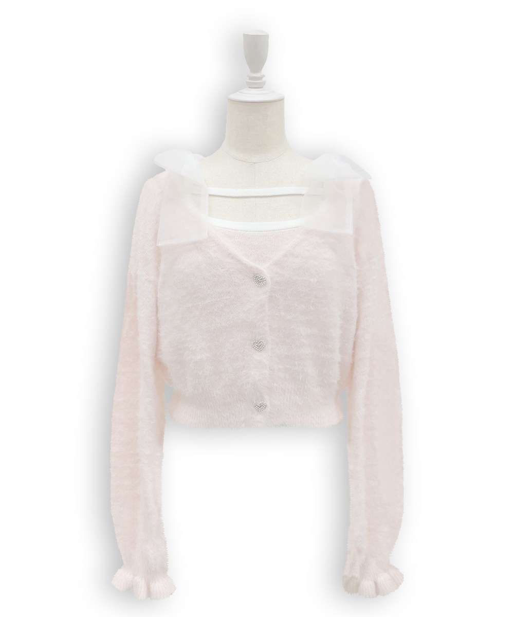 30% OFFフェザー素材のカーディガンキャミセット♡