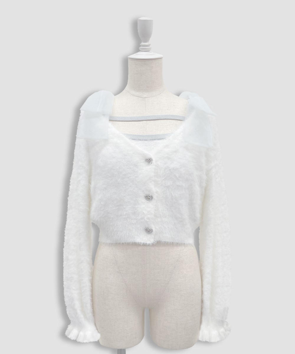 フェザー素材のカーディガンキャミセット♡