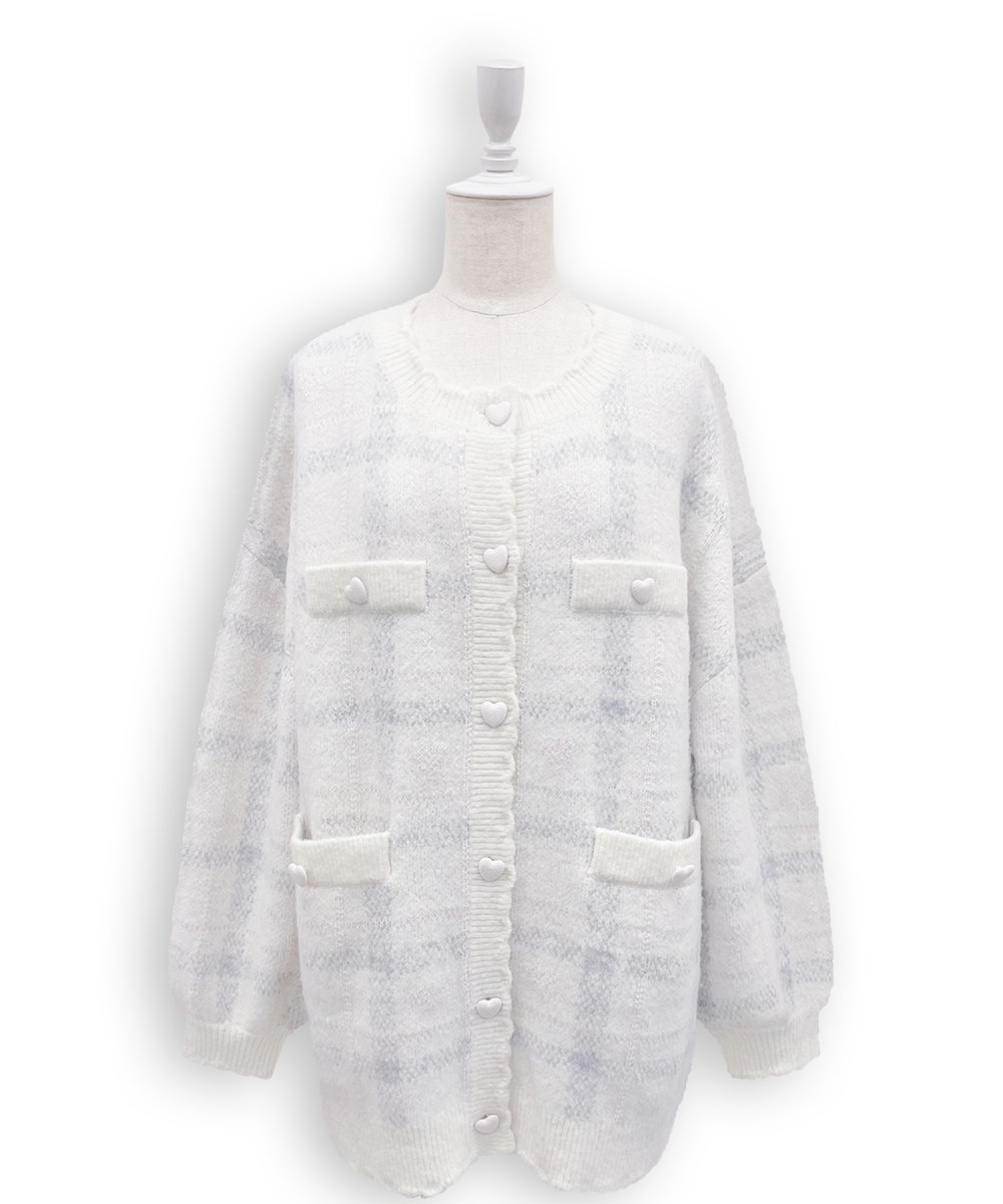 ハートの入ったチェック柄がかわいいビッグカーディガン♡