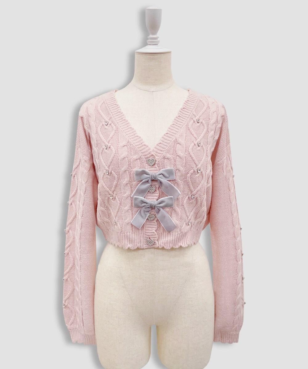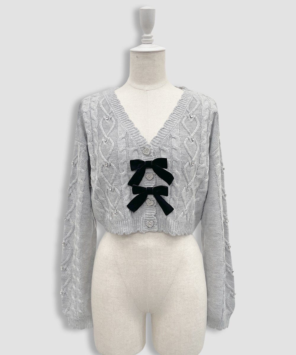 細部にハート型のビジューを散りばめたカーディガン♡