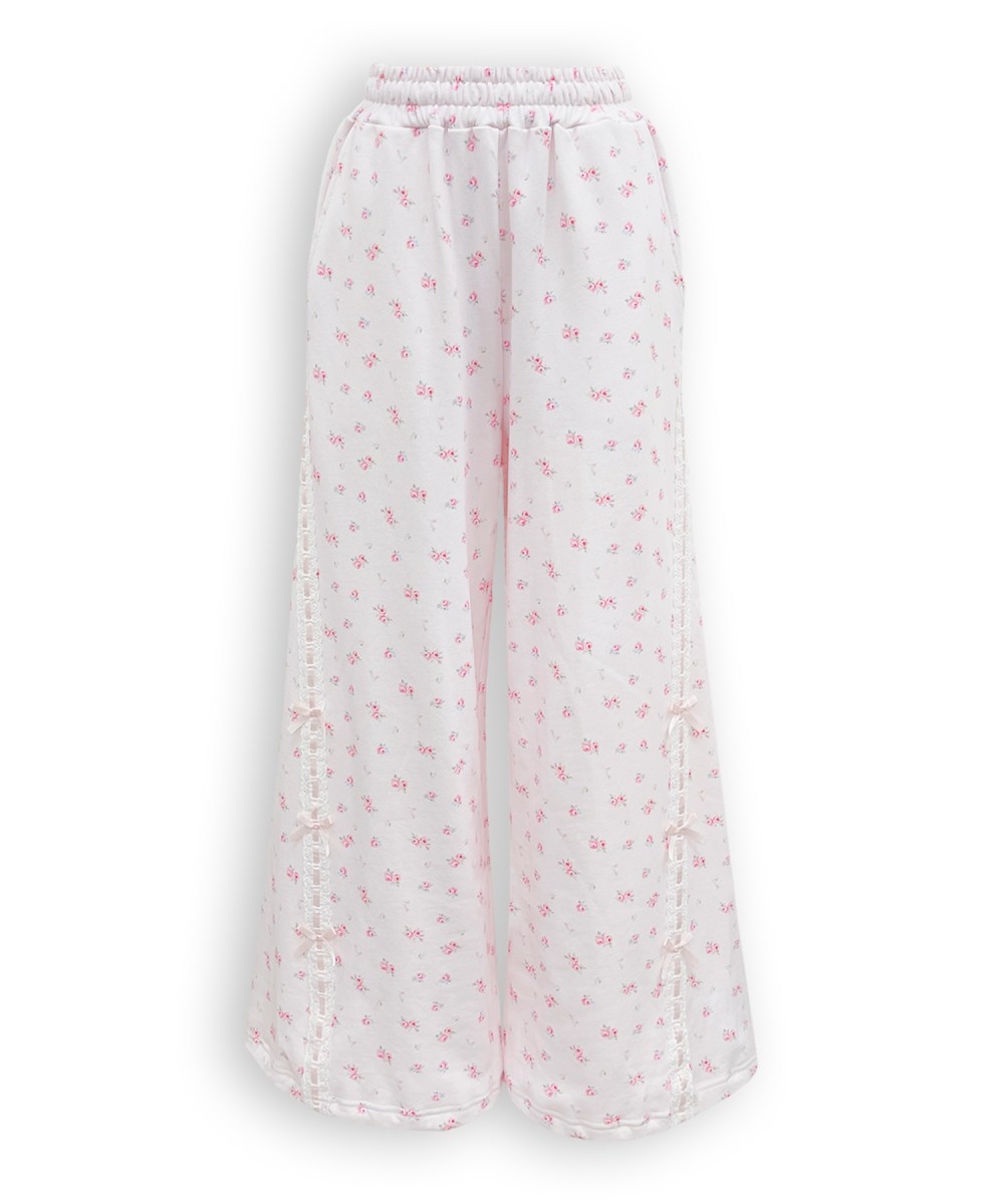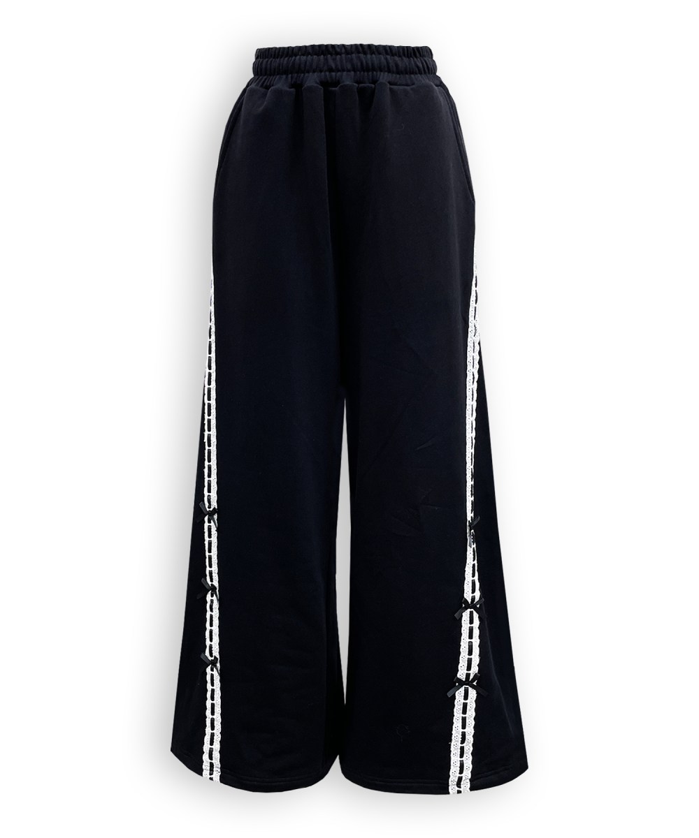 コットンレースとリボンをあしらいガーリーさをプラスしたスウェットパンツ♡