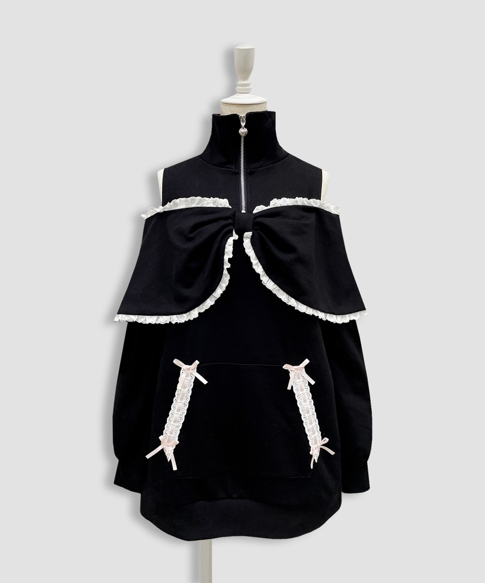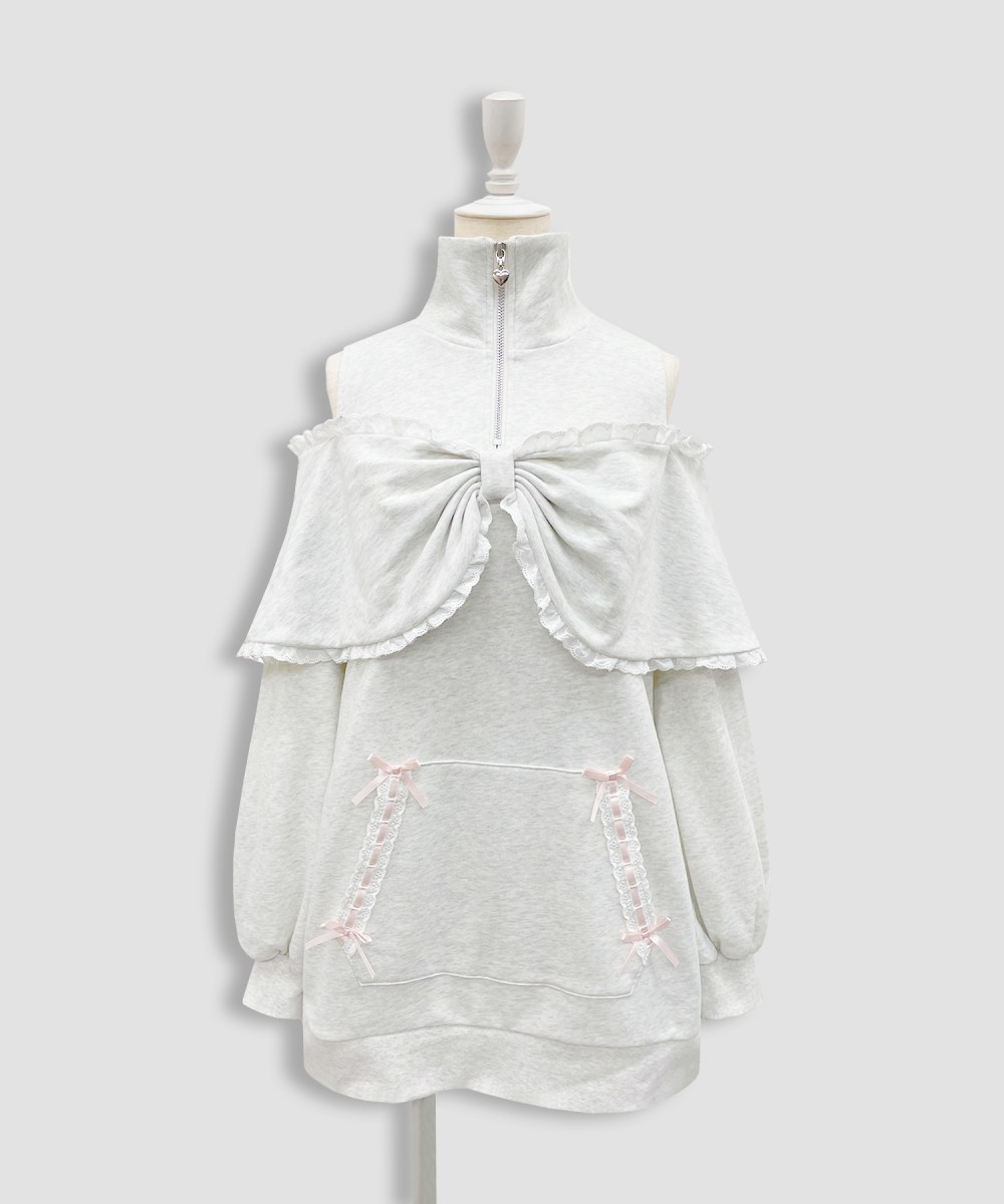 大きなリボンのようなデザインが目を引くハーフジップスウェットワンピース♡