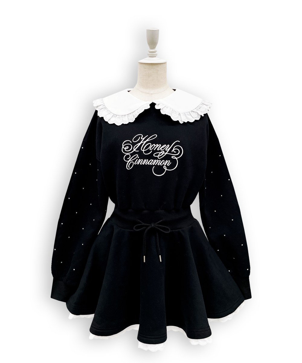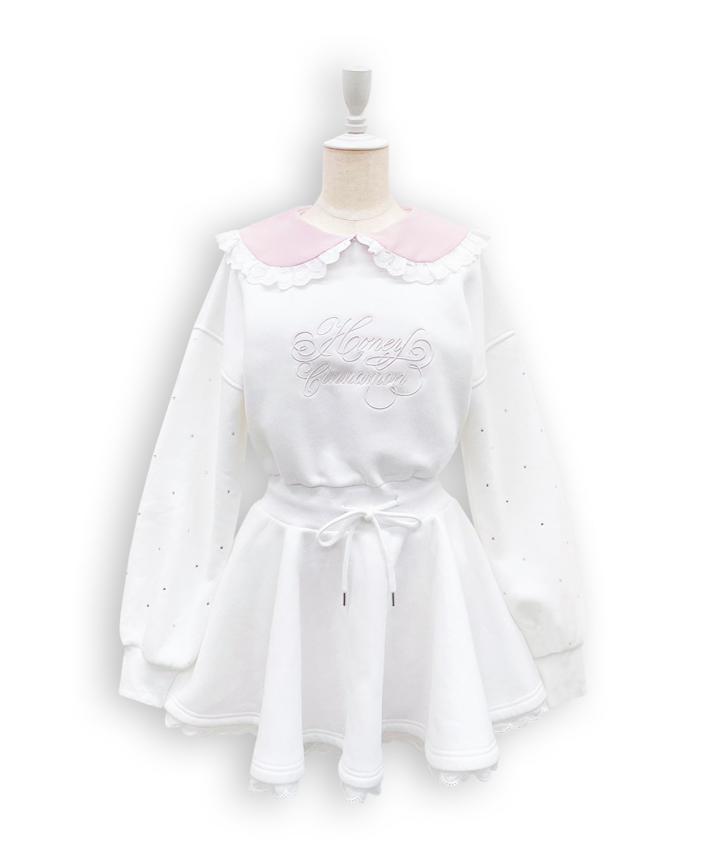 袖にはビジューを散りばめ、配色の刺繍や細部のコットンレース、衿付きでガーリーさ溢れる1枚♪