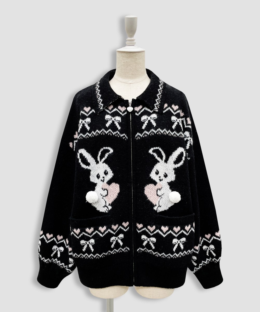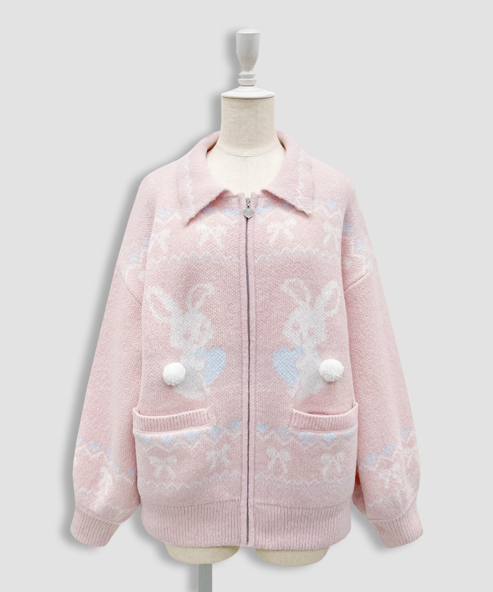 かわいいモチーフの柄が目をひくフルジップニット♡