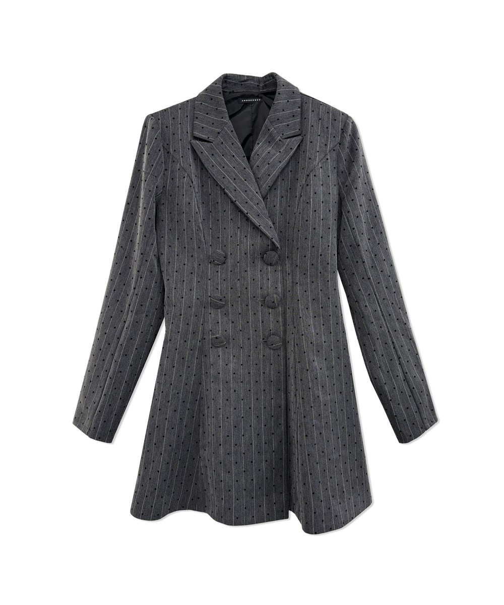 チャコールグレーにはホワイトのストライプにフロッキープリントのドット柄が入っています。