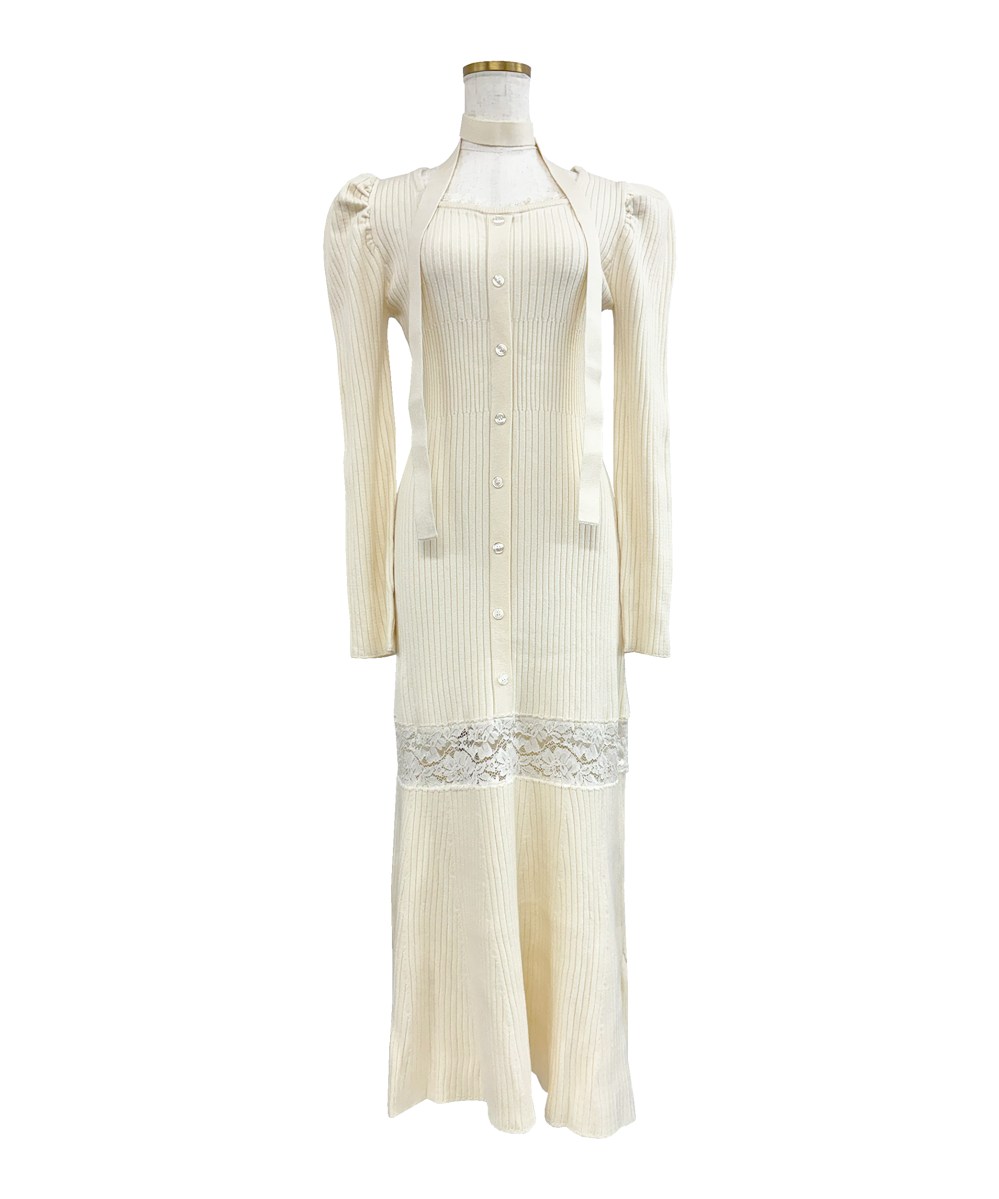 マーメイドシルエットに大胆なカッティングながらも露出しすぎないストレッチレースの切り替えが印象的なニットドレスが登場