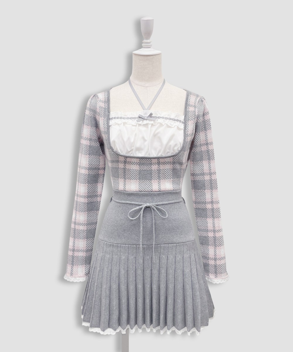 ピンクが入ったチェックがかわいいニットワンピース♡