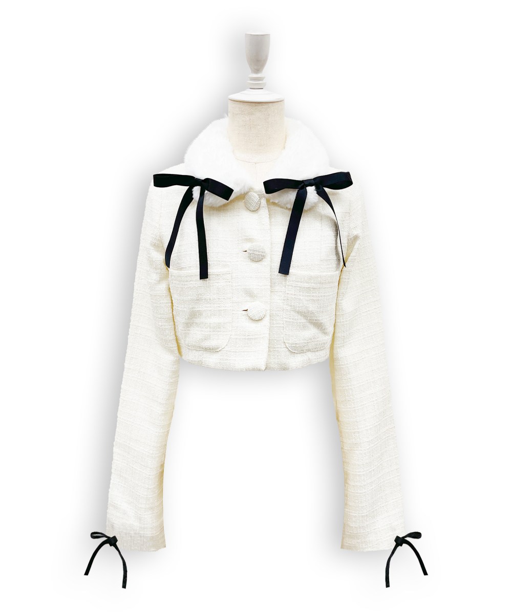 ファーの襟とブラックのリボンがアクセントになり写真映えもバッチリです♬
