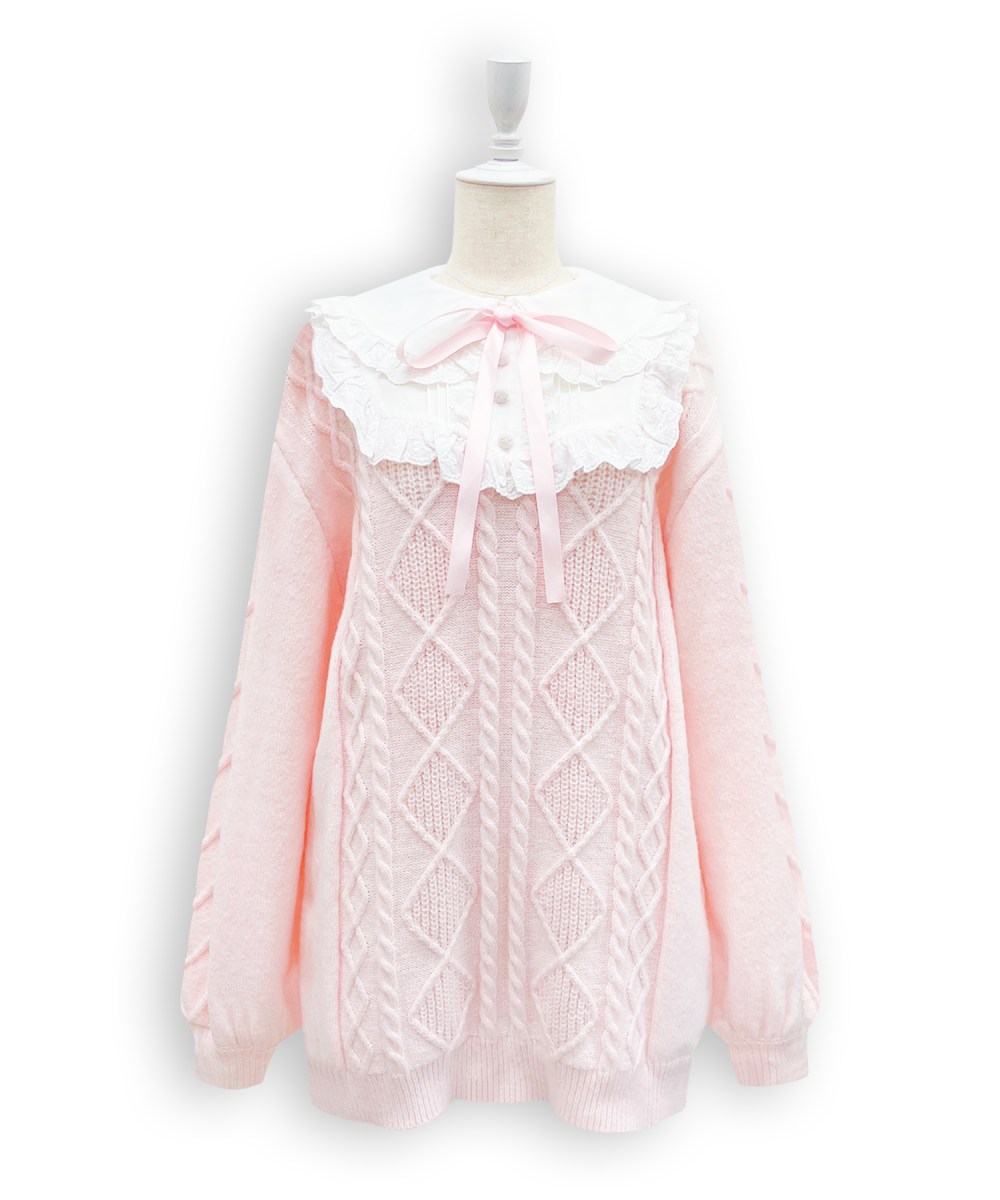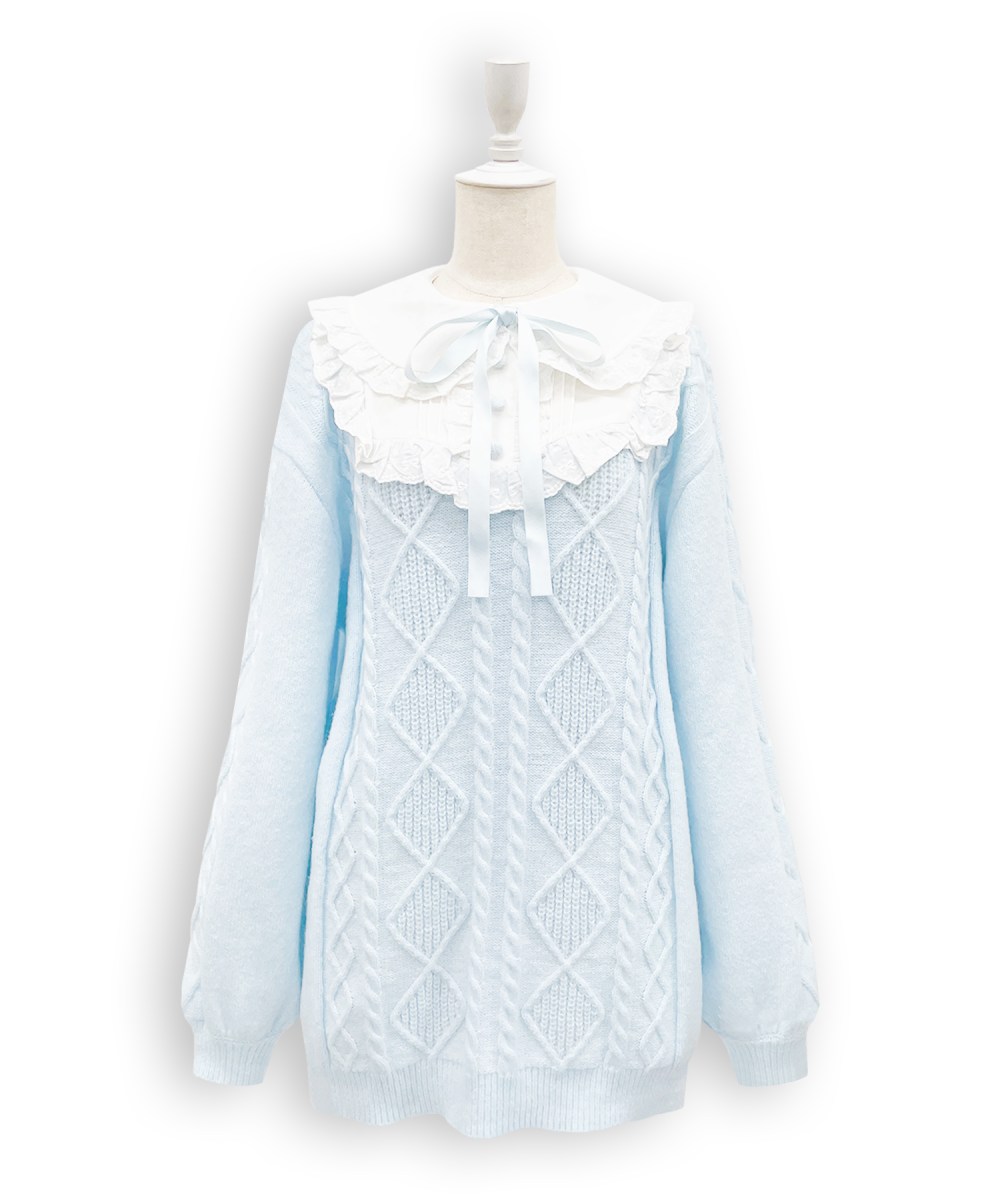 30% OFFリボン柄のコットンレースと配色のヨークでガーリーさのあるニットワンピース❤︎