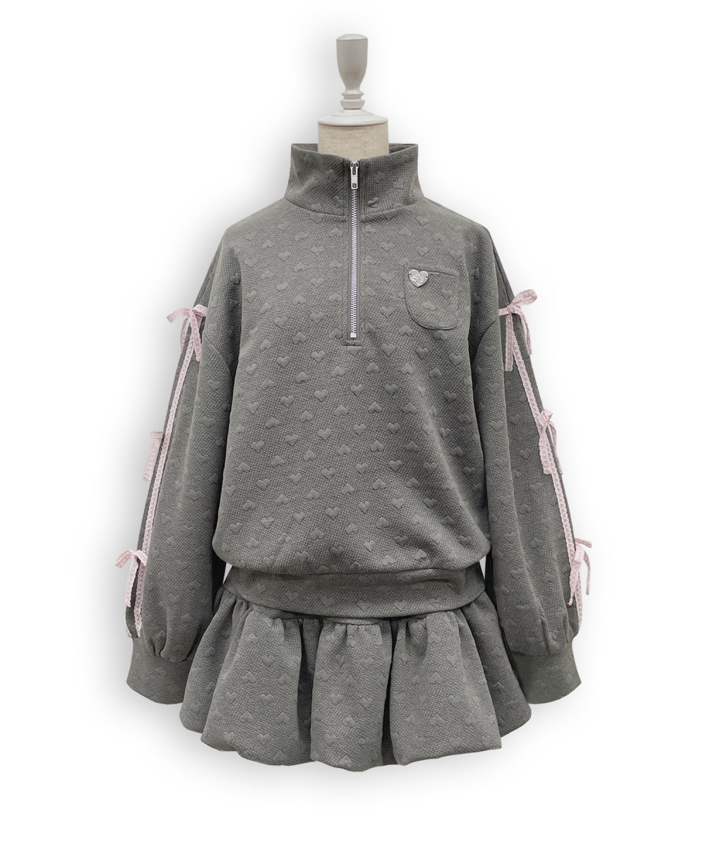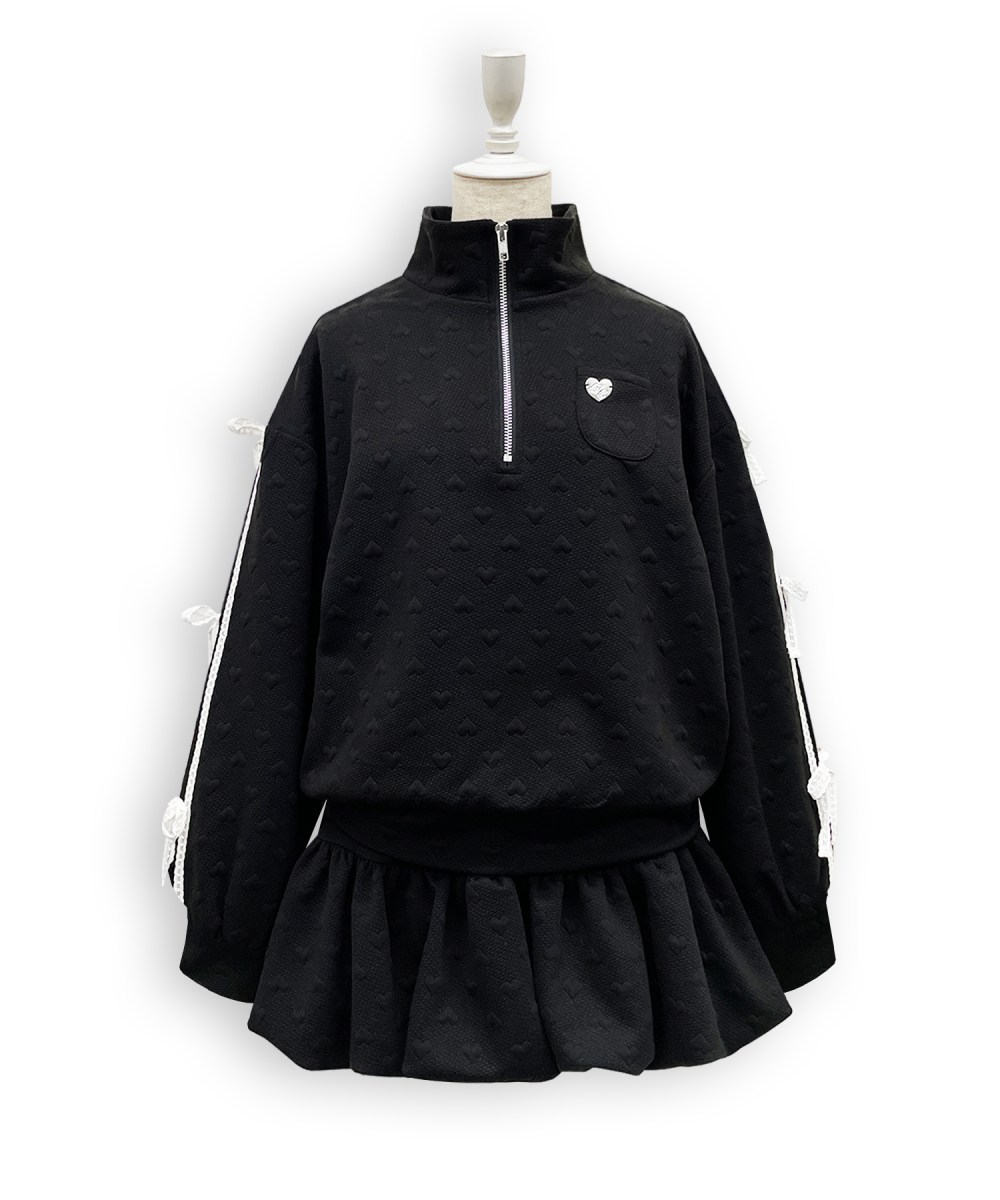 ぷくっと浮き出たハートのジャガードがかわいいセットアップ♡