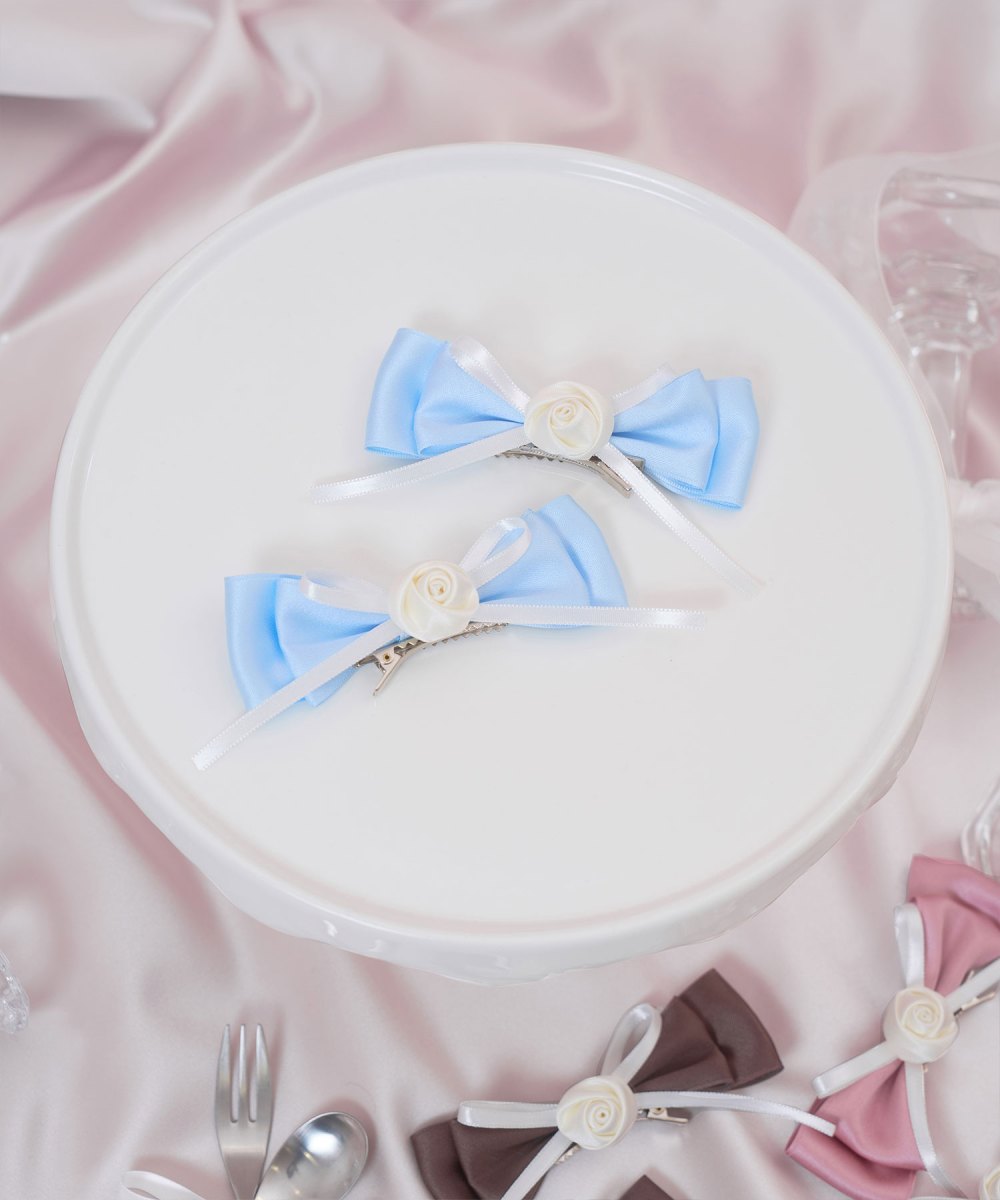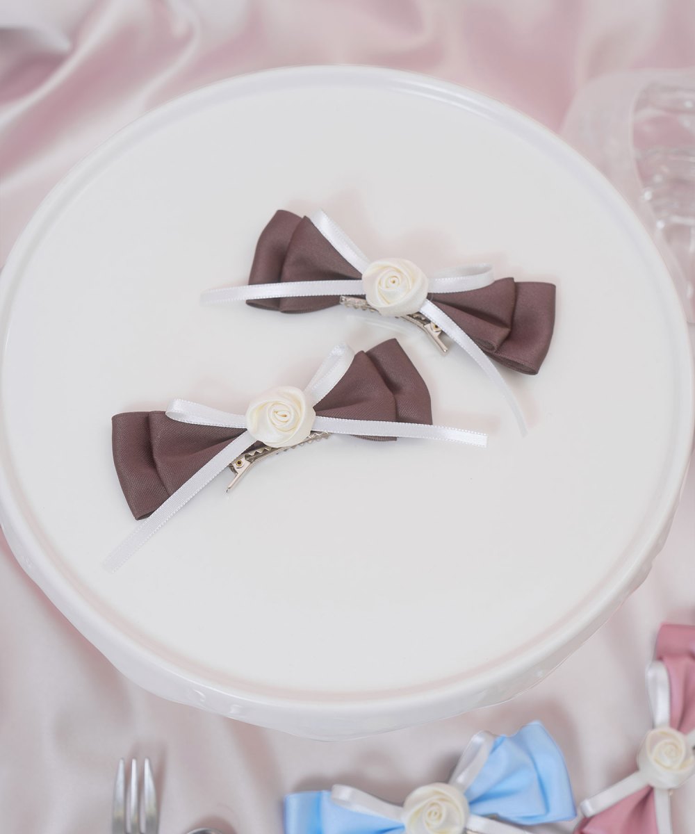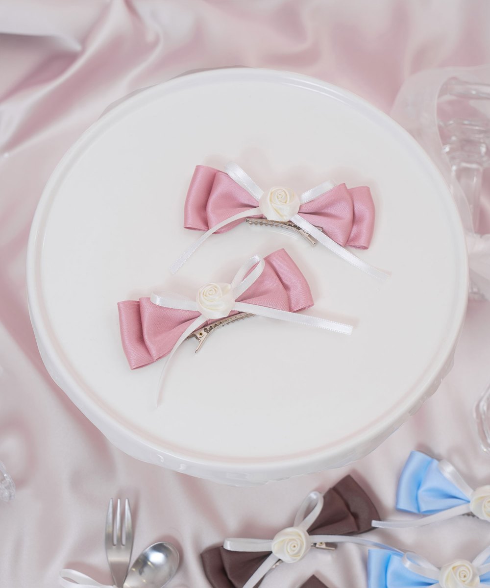 配色のバラのパーツと細いリボンがアクセントになってくれるリボンクリップのセット♪