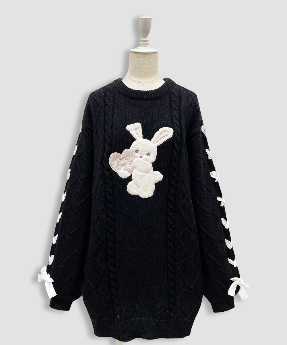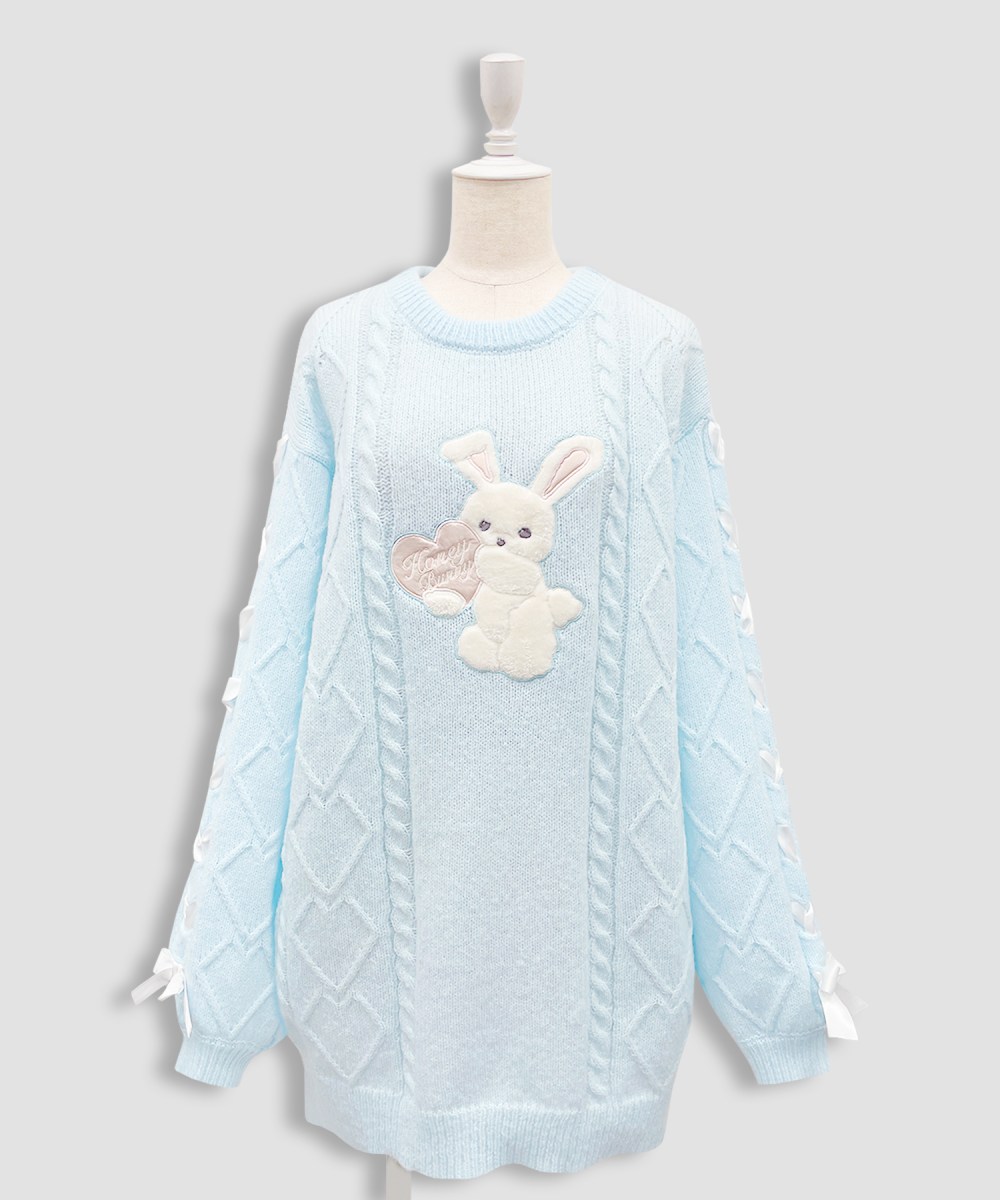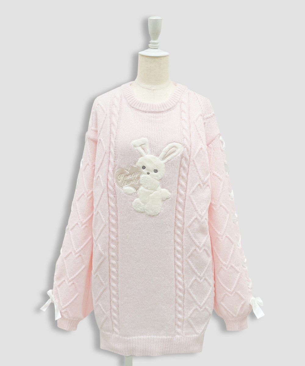 ハートのケーブル編みやレースアップでガーリーさ溢れる1枚です♪