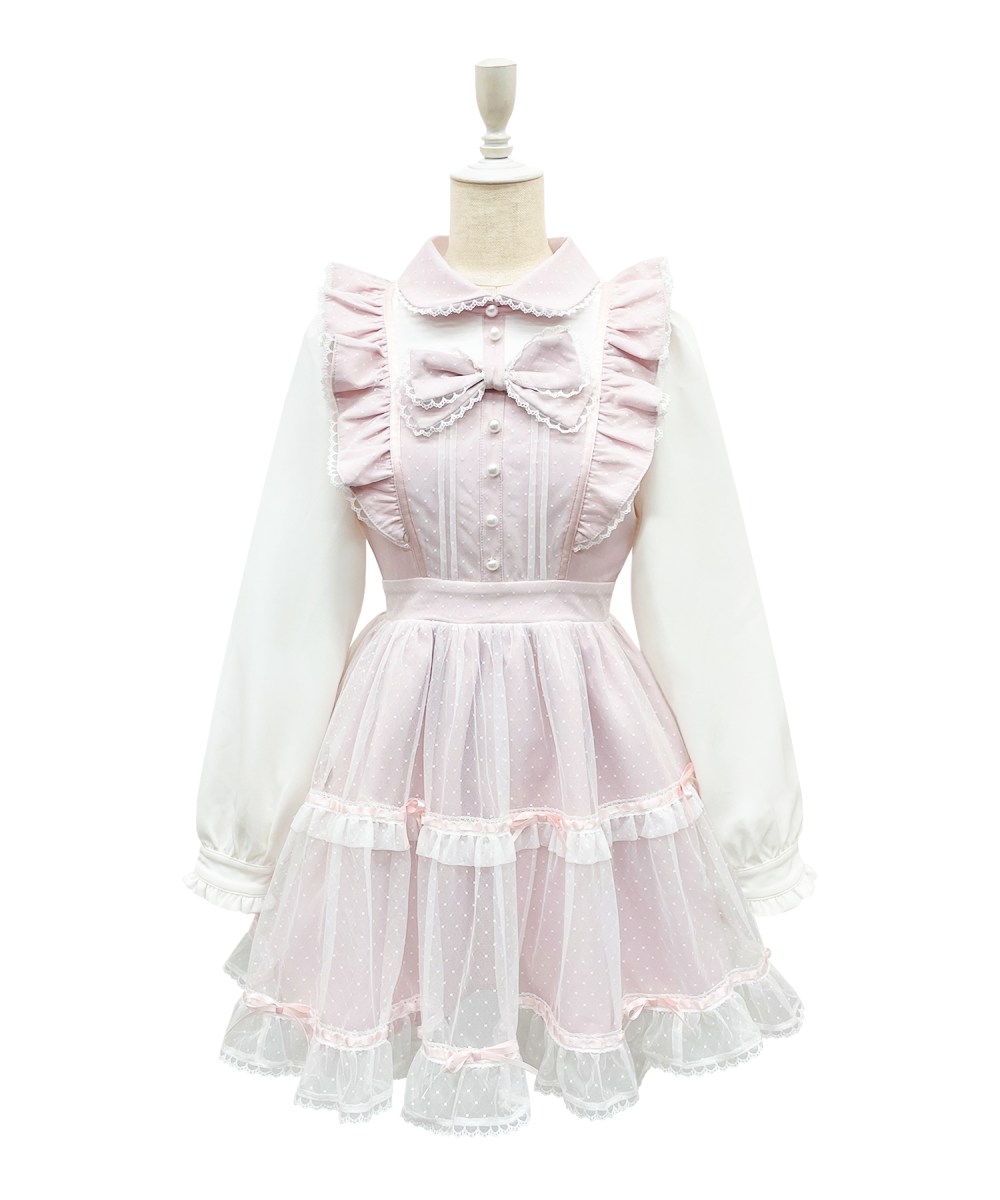 ドットチュールをアクセントに使用した春カラーのワンピース♡