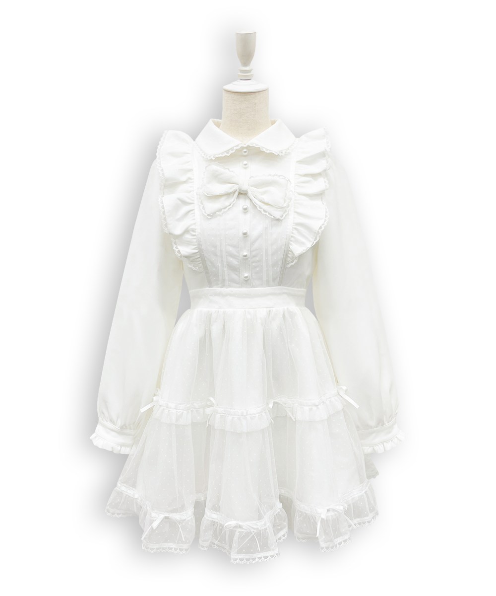 チュールでしっかり広がったフレアシルエットやはしごレースでガーリーさ溢れる1枚です♪