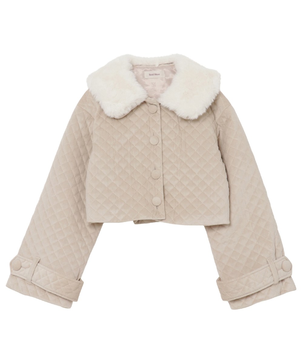 中綿たっぷりの暖かいキルティング素材のコート。 取り外しのできるファー衿で2WAY仕様になります。袖口は広がっている ゆったりさが可愛い一着。長すぎない丈感でスタイルアップも大期待。