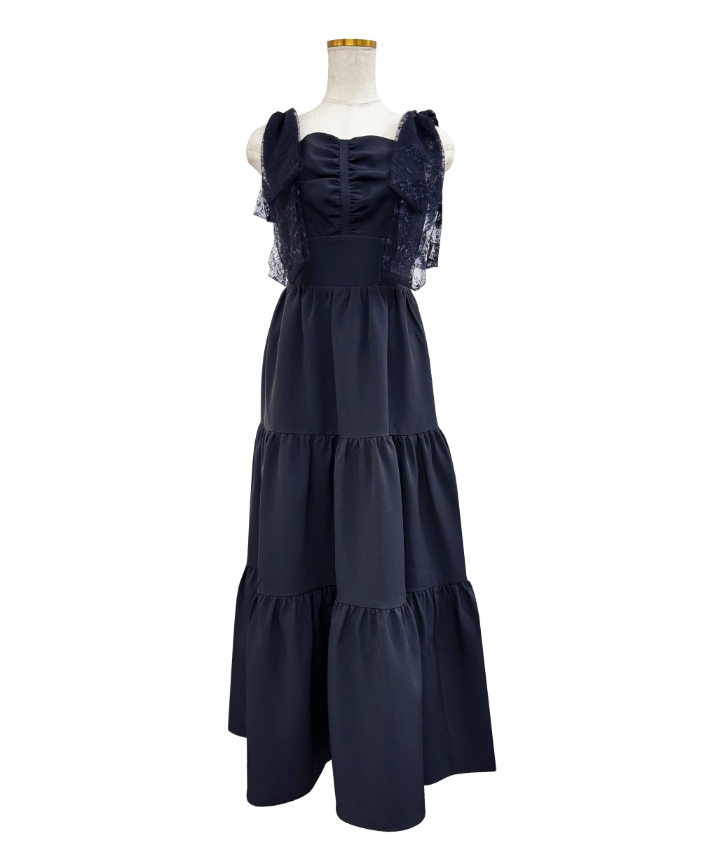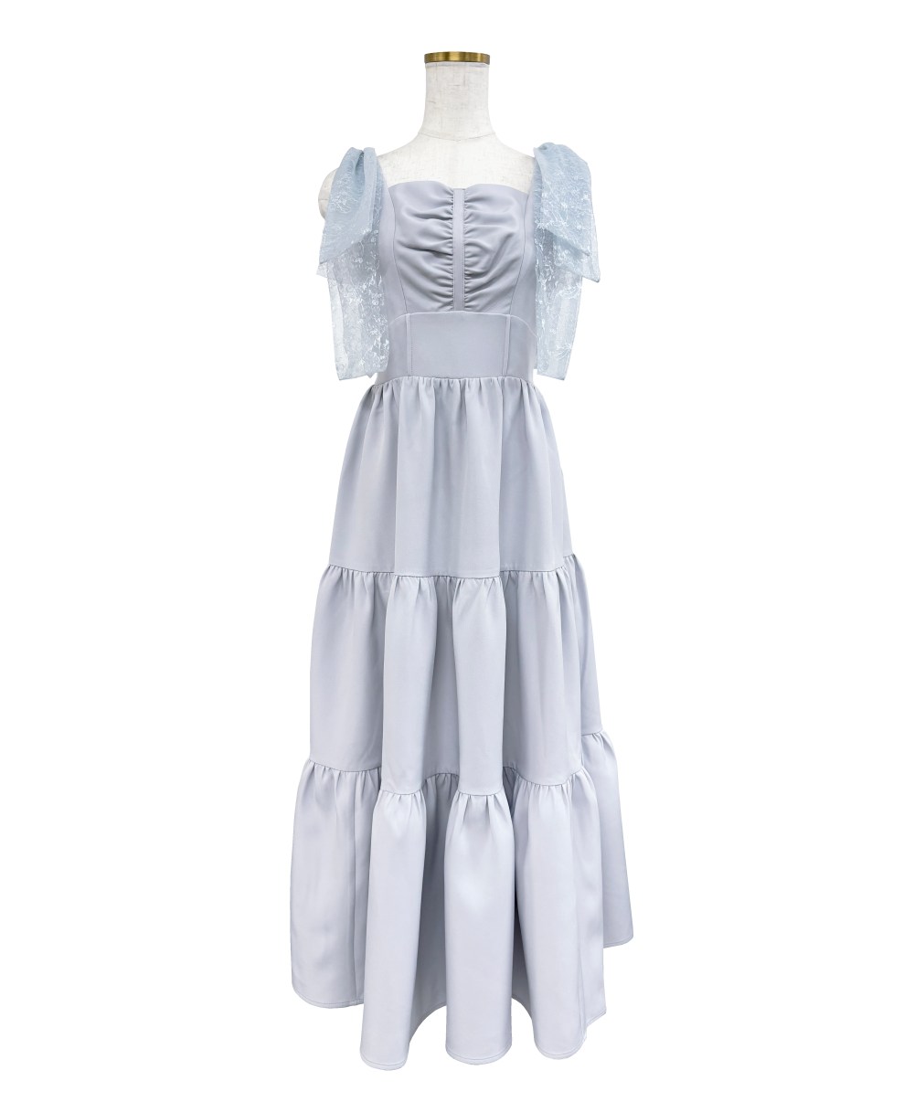 肩に軽やかな透け感が美しいレースリボンをあしらい、可憐さの中に上品な華やかさを感じるワンピース。