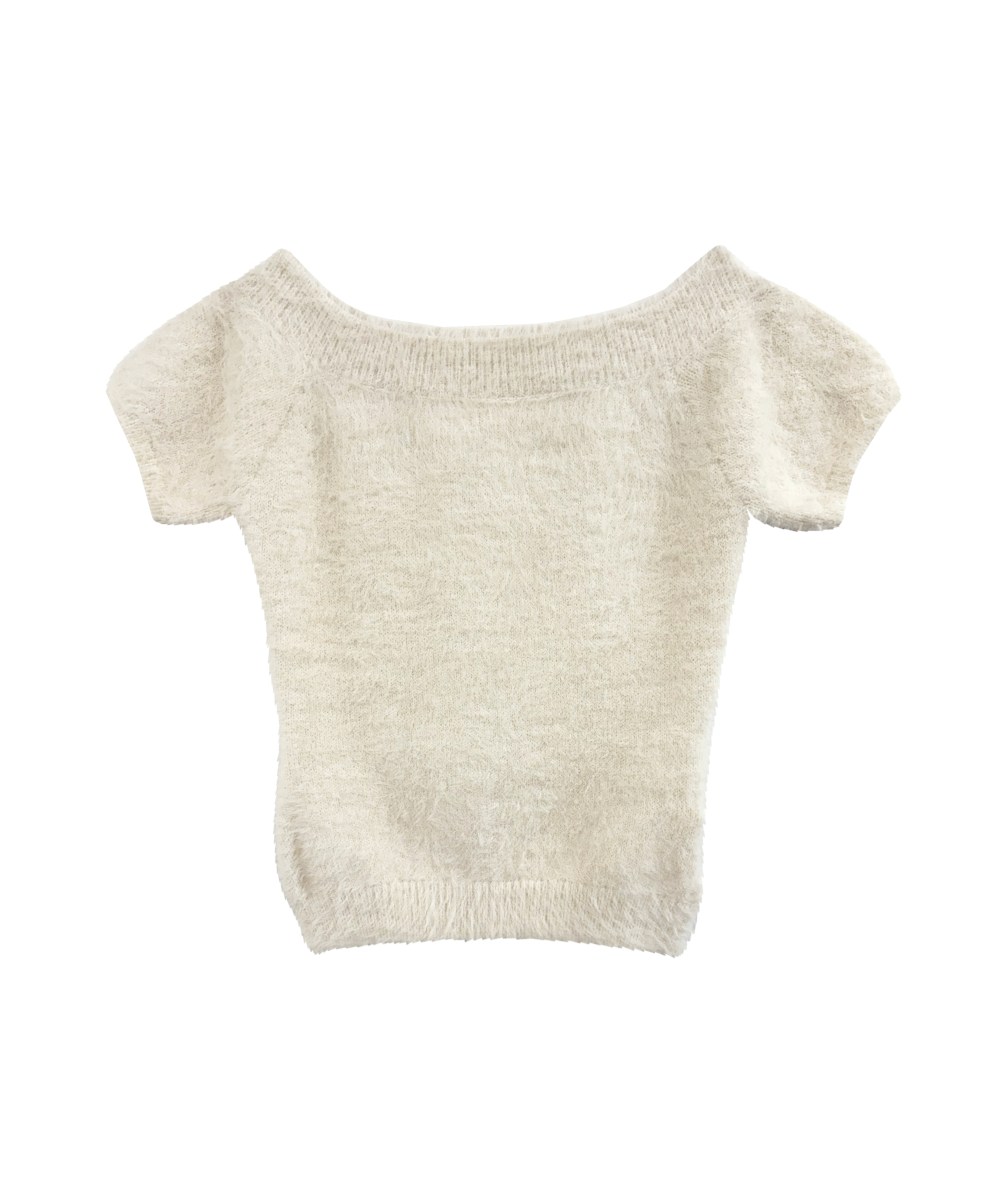 思わず触れたくなるようなふわふわのシャギーニットトップス。 同素材のアームウォーマーとネックウォーマーがセットになっております。 肩の落とし加減でオフショルダーにもなり、さりげない肌見せが抜け感を演出します。