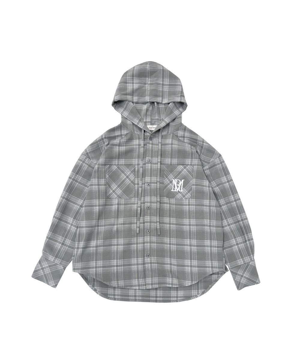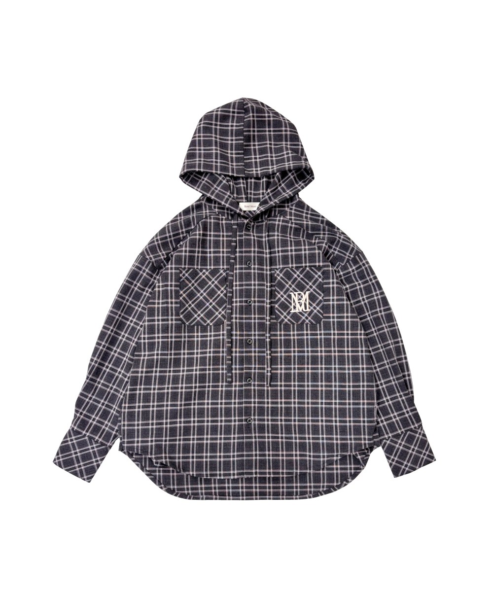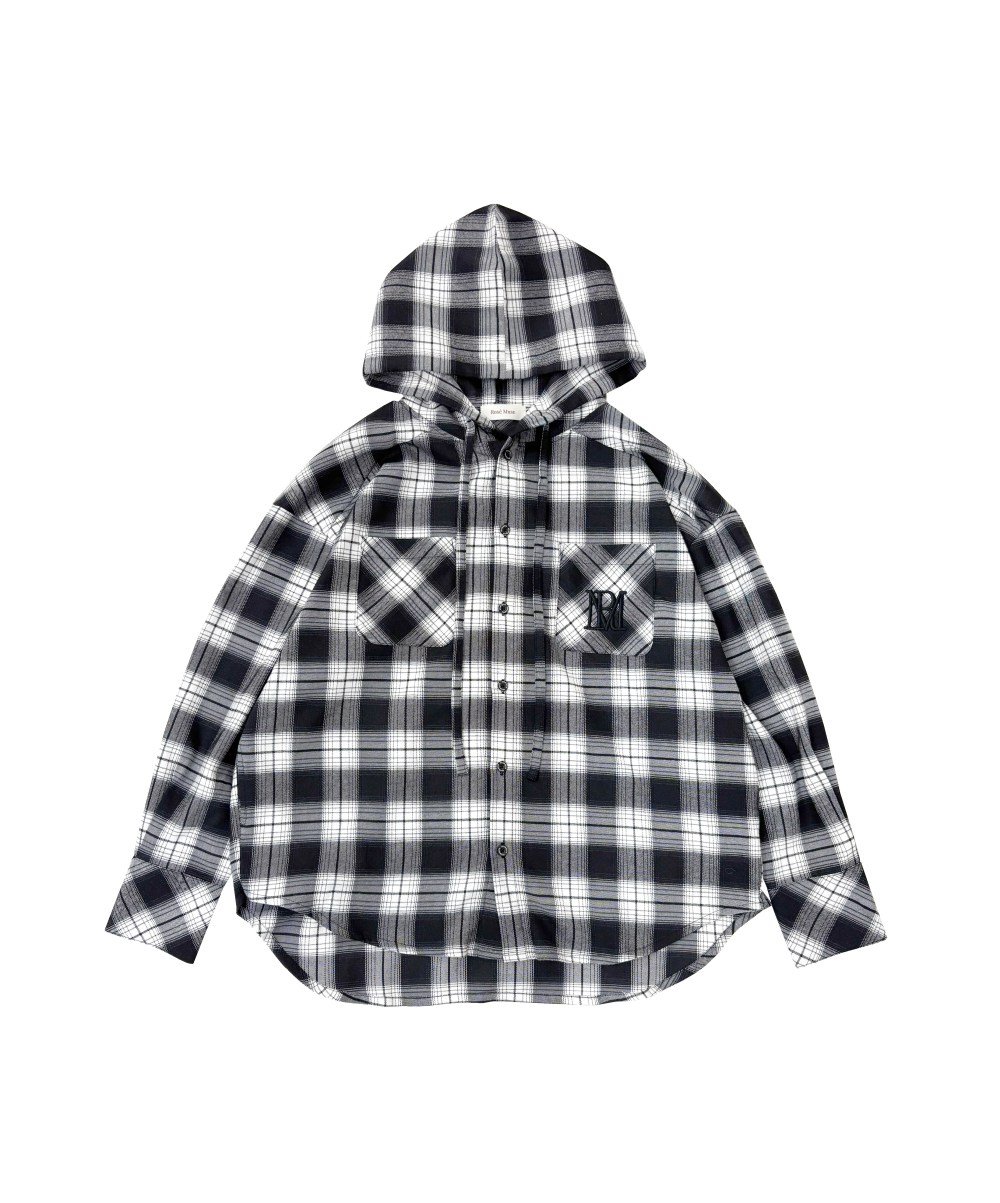 カジュアルなチェック生地を使用したフーディーシャツ。