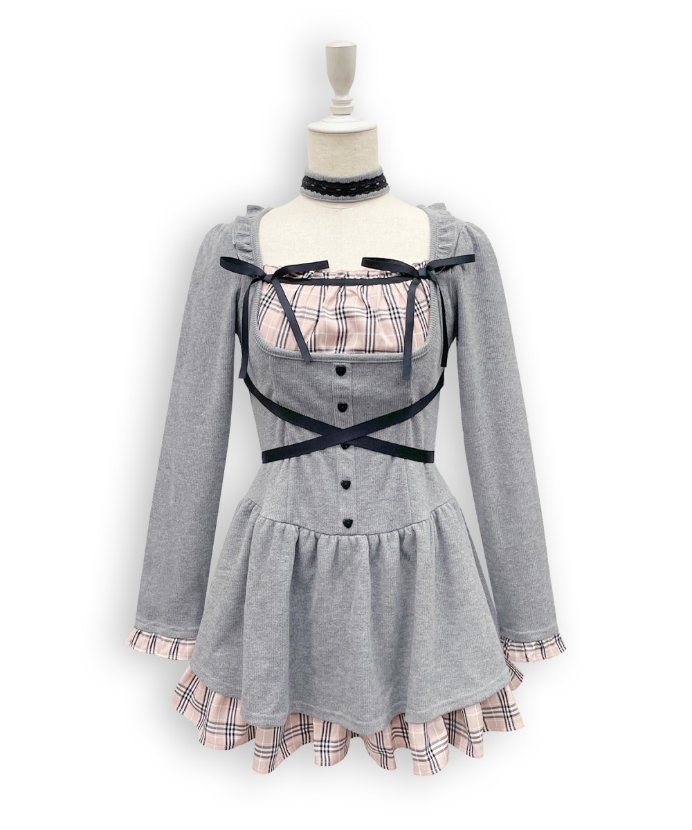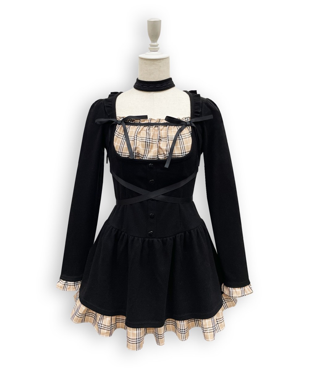 ブラックの配色使いがアクセントになってくれるチェックのドッキングワンピース◎