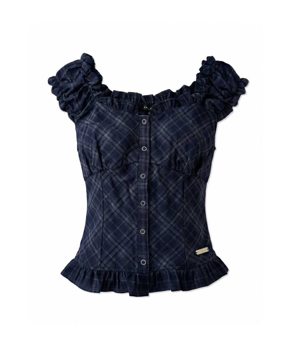 シャーリングやフリルのディテールがさりげないアクセントとなり、シンプルながらも表情のある仕上がりです。