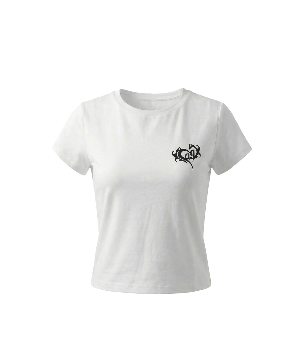 ハートモチーフデザインのTシャツ。