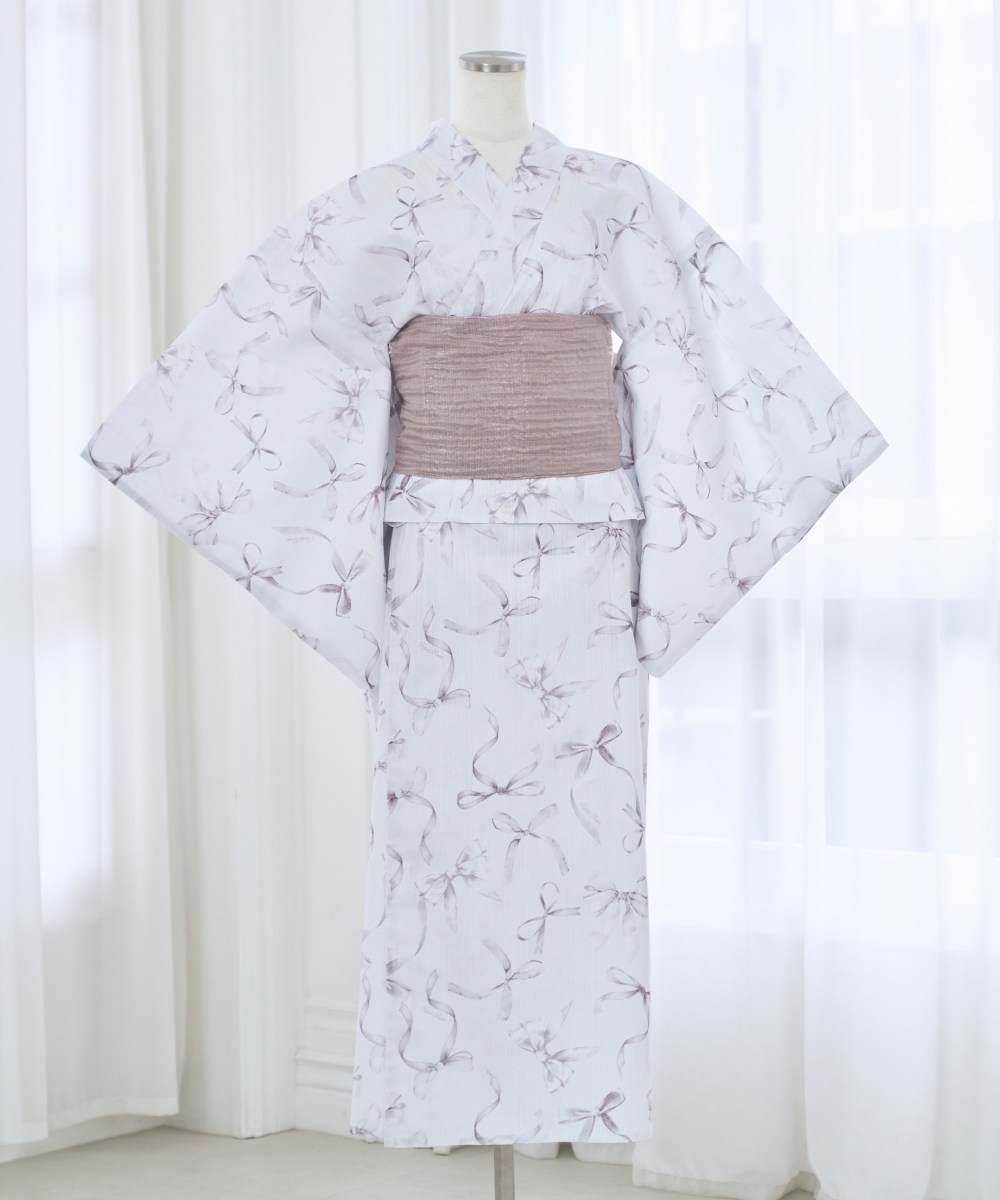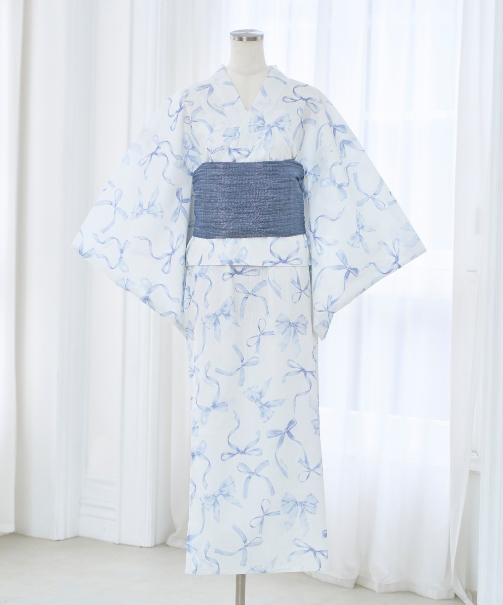 リボン柄のセパレートタイプの浴衣と飾り帯のセット。