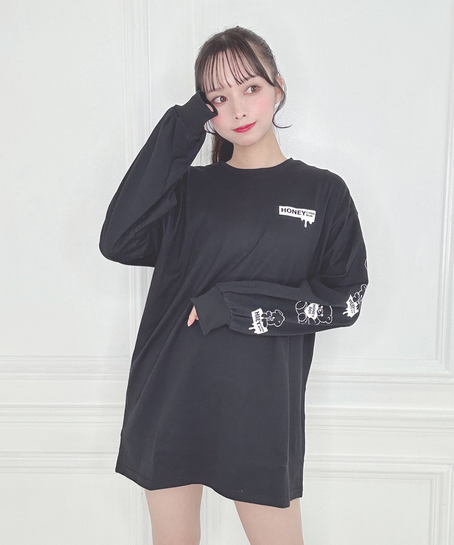 袖やバックのキュートなデザインがポイントのロンT♪ モノクロプリントで着回し抜群の1枚です◎